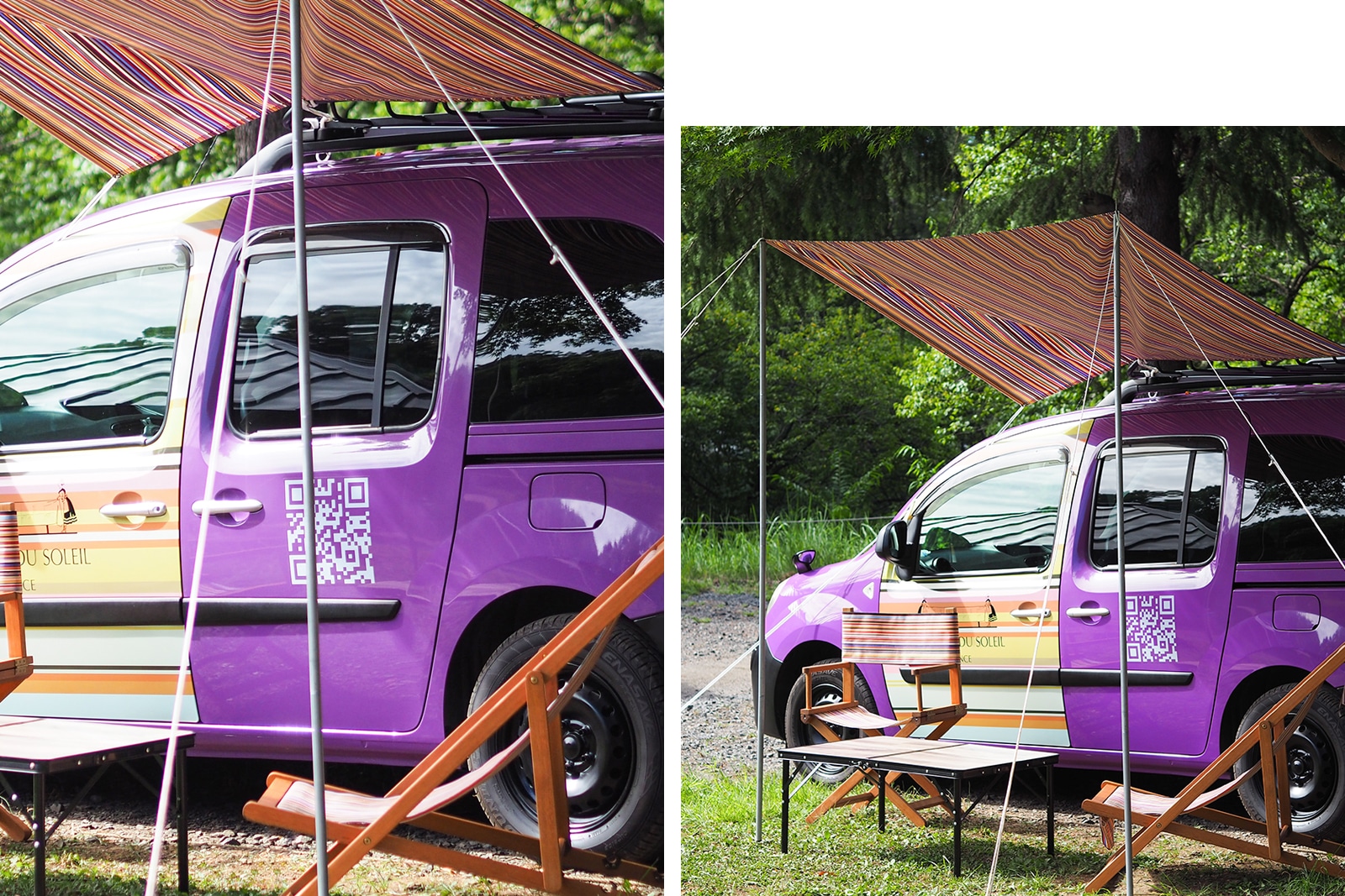 ソレイユストライプをまとった、フランス ルノーの人気車種「カングー ラッピングカー」を限定で作りました。