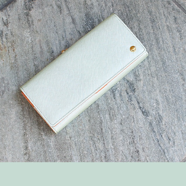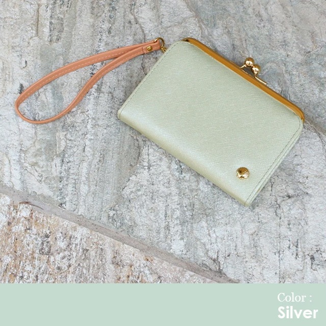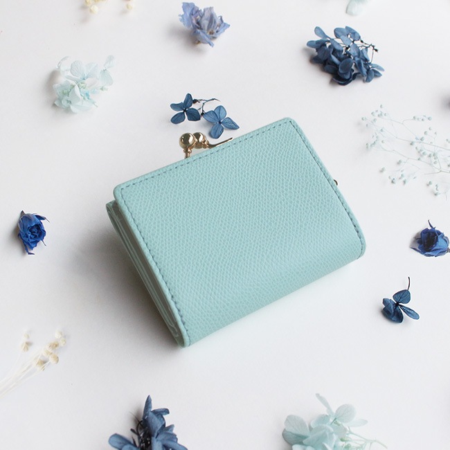 大人可愛いパール調カラーの三つ折り財布。
