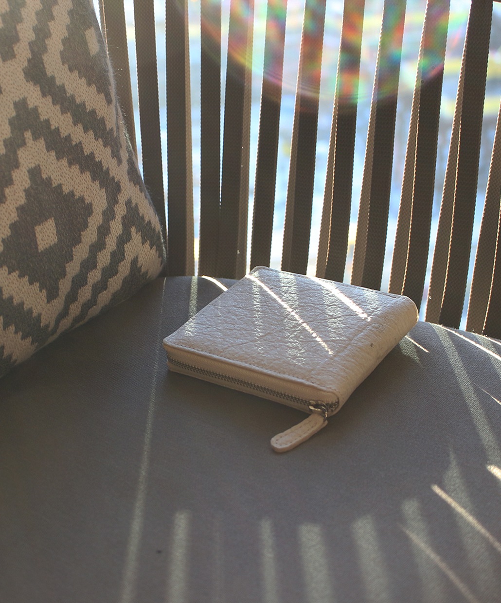 和紙のような手触りでありながら耐水性があり、火や熱にも強い素材となっております。とても耐久性が高い素材ですが、特筆すべきはその軽さで、革のお財布と比べても半分以下の重量となっております。