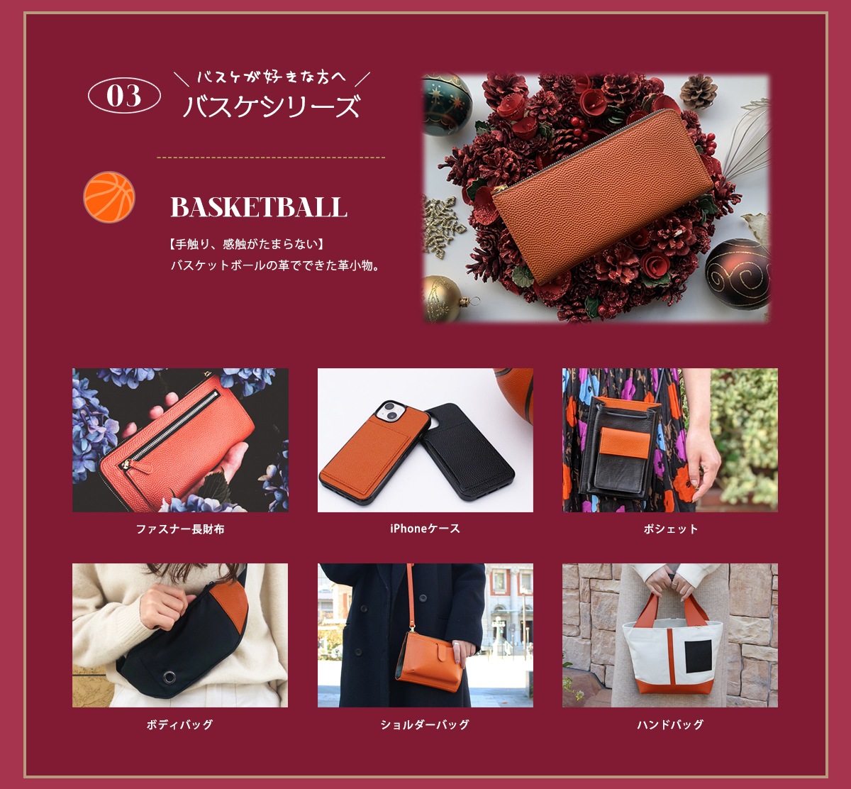 [コインケース] 実際にバスケットボールに使われている革でできたコインケース。