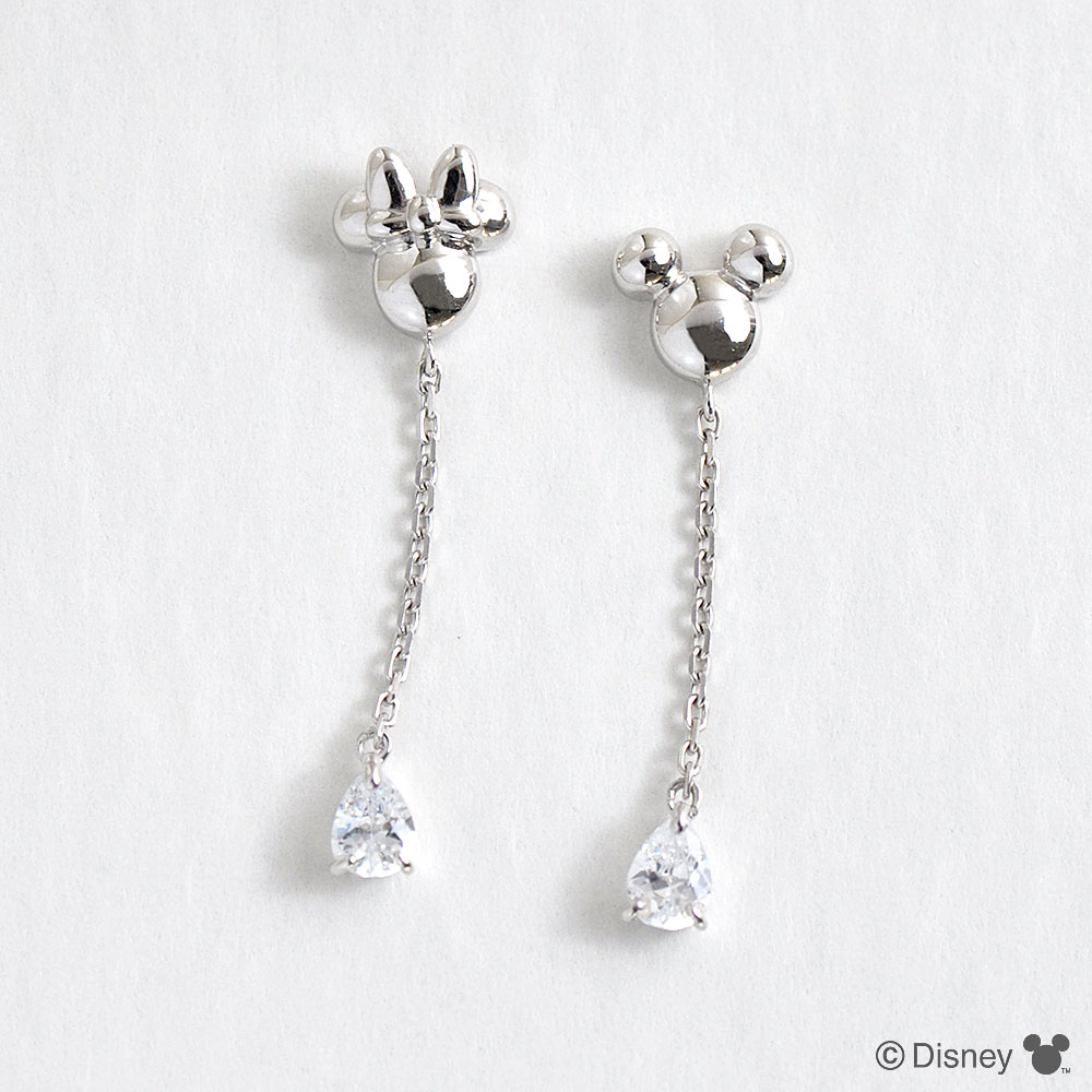 ミッキーとミニーが片耳ずつデザインされた欲張りなピアス。ディズニーファンにはたまらないアイテムです。