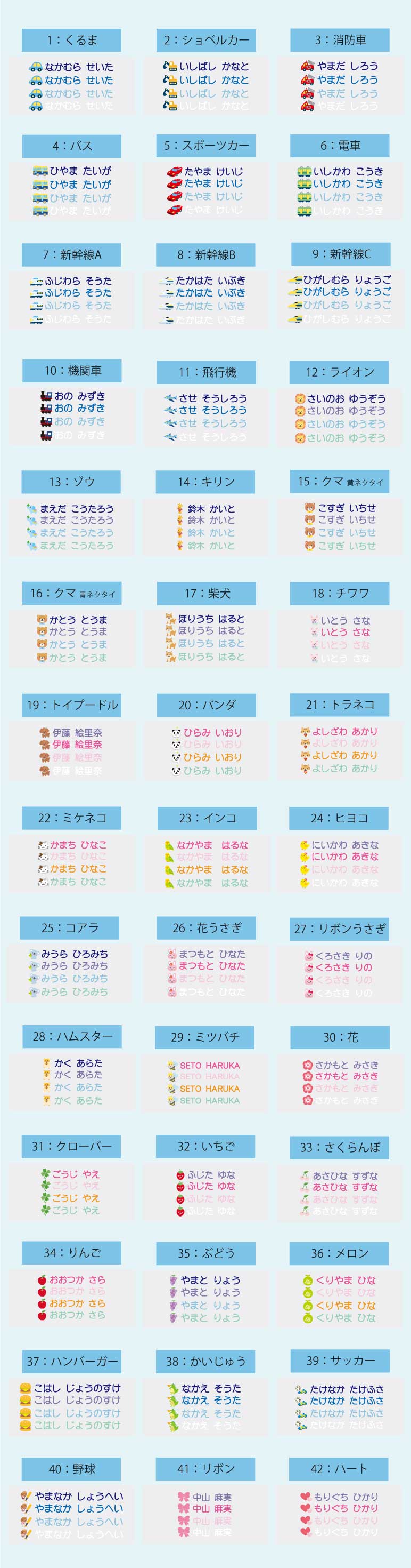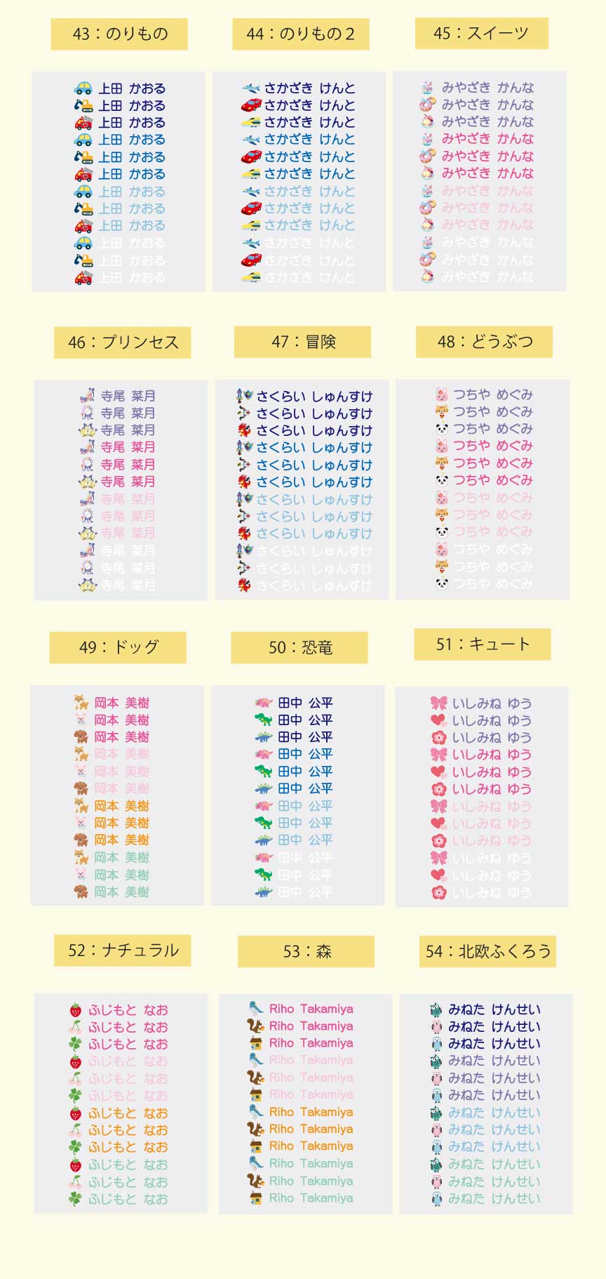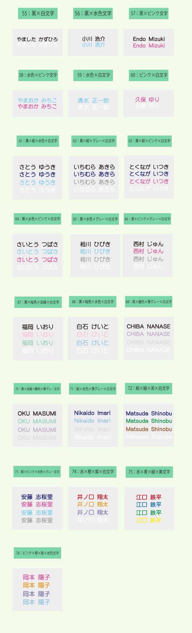 2色タイプ:各文字色×36ピース(全6シート 合計72ピース)