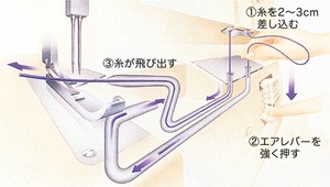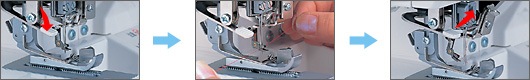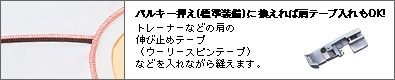 | 押え金を「レース押え」に交換することによって、レース付けが簡単にできます。 |