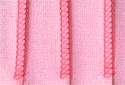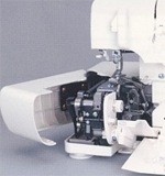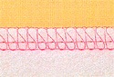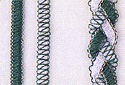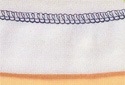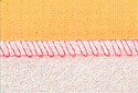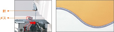 | 縁かがりと同時に市販のゴムテープを縫い込むことができます。水着やショーツ作りに便利です。 |