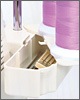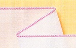 縁かがりと同時に、市販の“パイピングコード”を縫うことができます。3mm用と5mm用とがあります。 |