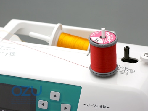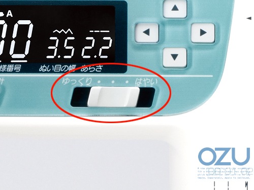 ミシンの背面から見て、向かって左が送り歯を下げるモードです。