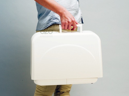 カバーの外にミシンの取っ手がでてくるので、持ち運びも、収納もラクラク! |