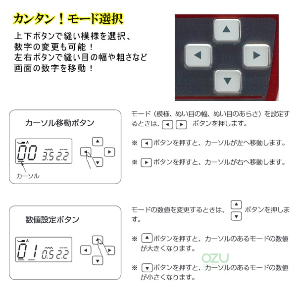 アップリケや、キルト縫いなど、フリーモーションで自由に縫う場合には、送り歯を下げる必要があります。
