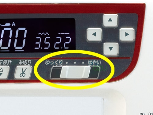 ミシンの背面から見て、向かって左が送り歯を下げるモードです。