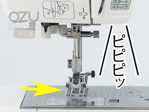 通常縫う場合、送り歯が布を後ろに送る事で縫い続ける事ができますが、アップリケや模様縫いなど、まっすぐ縫いではない、フリーモーションでのカーブや曲線の場合に、このドロップフィード機能を使います。