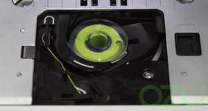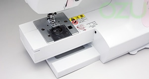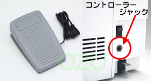 標準付属のフットコントローラーを使えば、足でのスピードコントロールが可能。カーテン縫いや、ワンピース縫いなど、大きな作品を縫う際に、両手を布に添えることができるので、縫いブレ回避にもなります。 |
