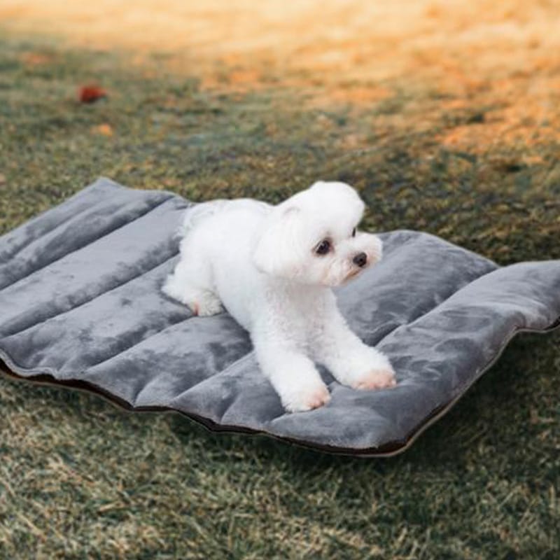 ロール状に丸めてコンパクトに持ち運びできるペットベッド。