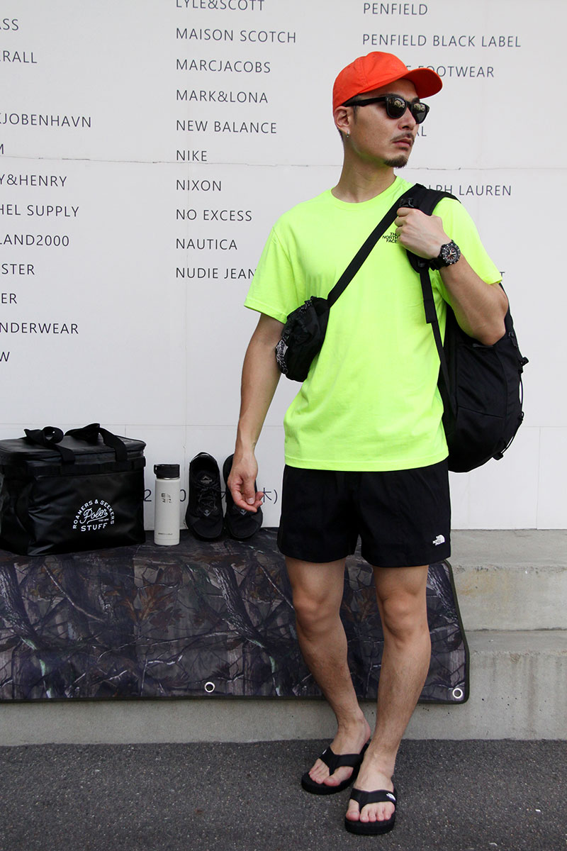 アメリカアウトドアブランドのアイテムを使ったサマーアクティブスタイルのご紹介です。 夏の季節はキャンプだったり、海や川の水遊び、サイクリングなどさまざまなシーンで最適なアイテムを着用するかと思います。 アクティブな活動する際に動きやすい素材のトップスやパンツだったり、レジャーシートやバックパックなどを取り入れることでちょっとした休憩をする際に活躍するアイテムとなっております。蛍光色のアイテムは軽やかでアクティブな演出させるのに最適ですし、コーディネートとしてもアクセントを加えることができます。 今回のスタイルは普段使いからアクティブシーンまで幅広く活用できるスタイルです。