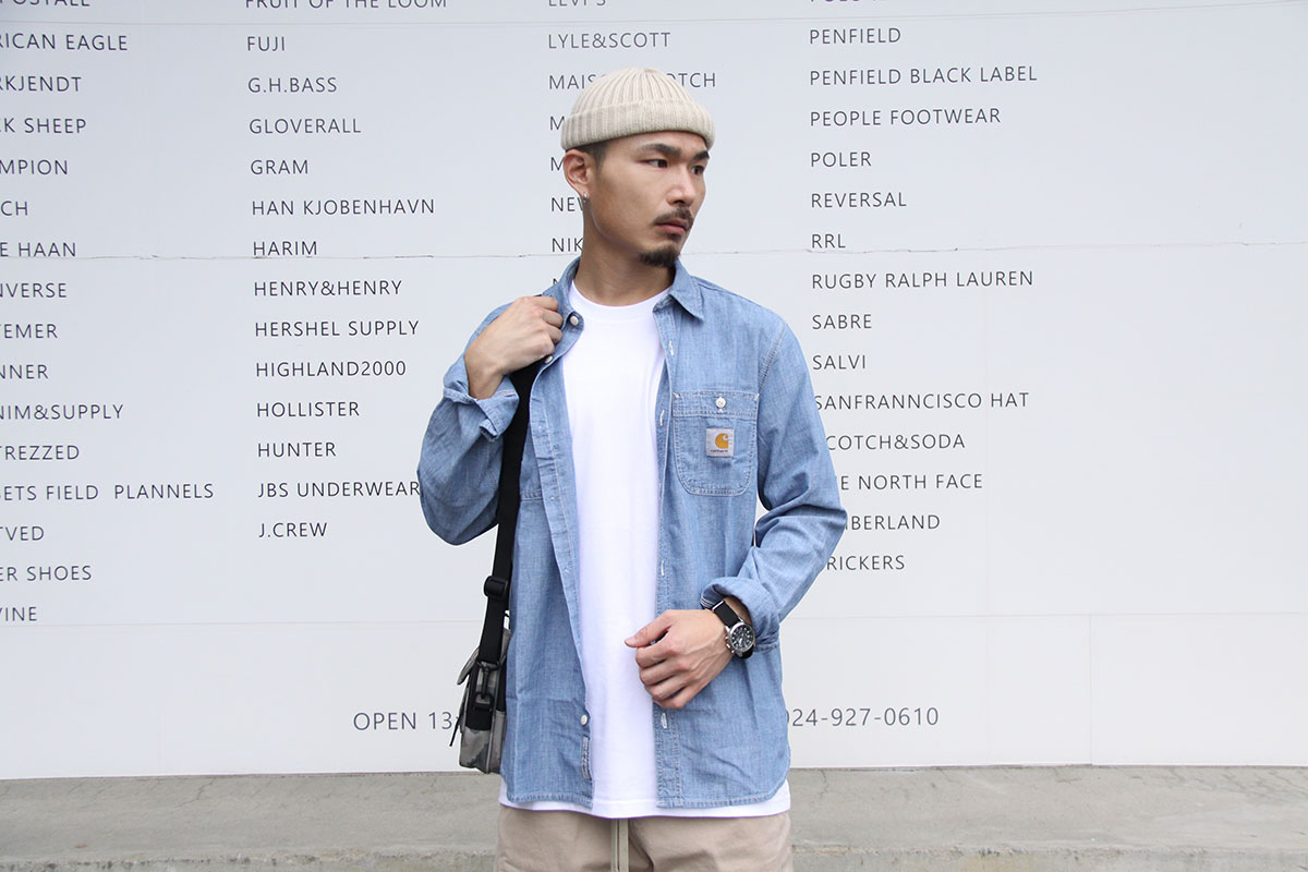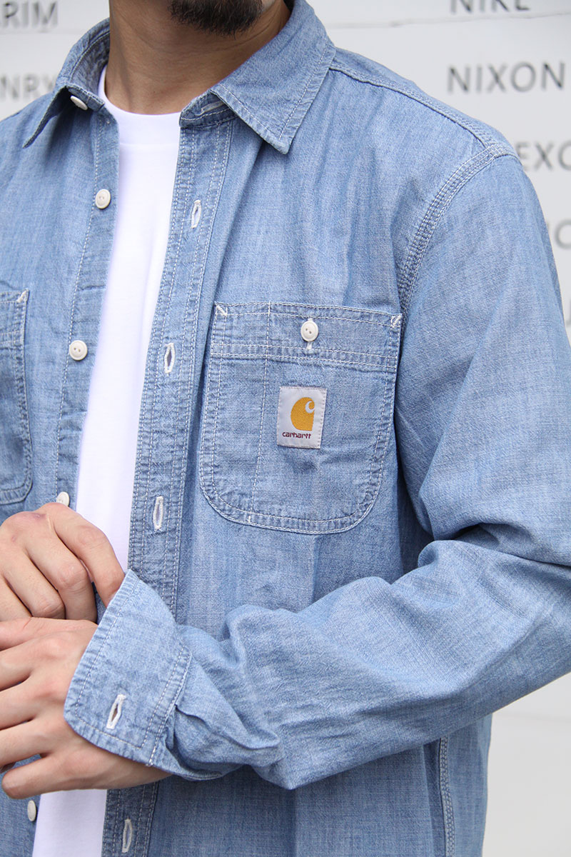 CARHARTT WIPのデニムのような質感を持つ軽量なコットン素材を使用したルーズフィットシルエットのロングスリーブクリンクシャツ。春夏の軽装に最適。通気性が高く、見た目も爽やかな印象でワーク系やアメカジ、カジュアルスタイルまで幅広く着用ができます。少し肌寒い日は欠かせないシャツ系アイテムはこれからの梅雨時期の着用にもオススメです。ホワイト・ベージュ・ブルーと行ったカジュアルなカラーリングでシンプルに纏めたスタイルとなっています。
