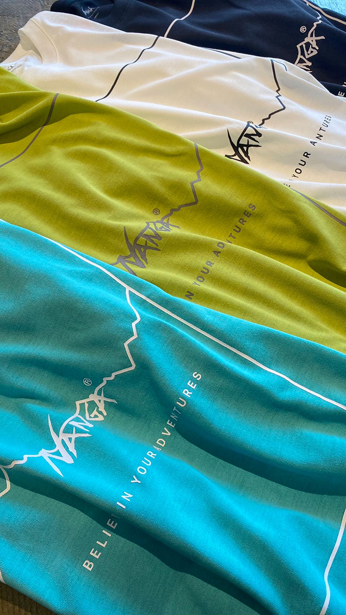 NANGAから毎回完売の人気商品DRY MIX FRAME LOGO TEEが今年の新色を加えて発売です。「DRY MIX 素材(ドライミックス)」は、NANGAをはじめとするアウトドア・ライフスタイルブランドでよく使われている夏向けの高機能素材です!吸汗速乾性に優れたポリエステル系の高機能素材。ドライな肌触りで汗をかいてもベタつきにくい。夏でも快適に過ごせるため、アウトドアや街着のTシャツやパンツに多用されています。そしてナイロンタッサー素材を使用した、夏にぴったりの軽量イージーパンツは、表面に凹凸感があるため肌離れが良く、真夏でも快適に着用できるドライな質感が特長です。