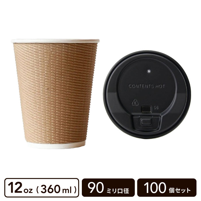 12oz ECOクラフト二重カップ+開閉式フタ(黒)セット