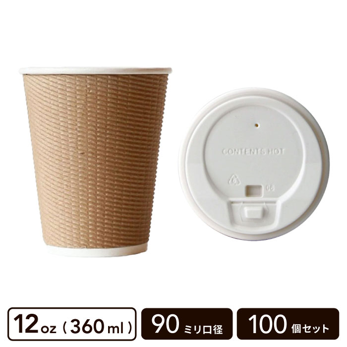 12oz ECOクラフト二重カップ+開閉式フタ(白)セット