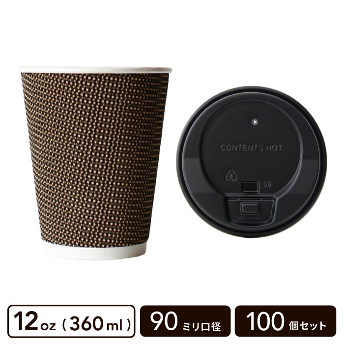 12oz ゼブラ二重カップ+開閉式フタ(黒)セット