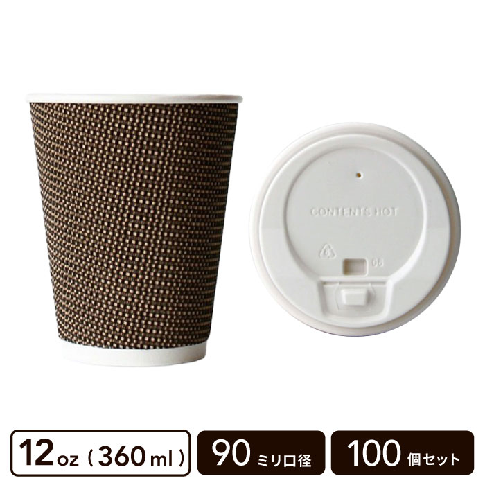 12oz ゼブラ二重カップ+開閉式フタ(白)セット