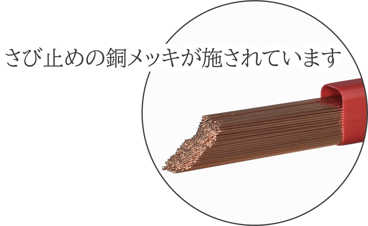 トービンは一般のアーク溶接棒でみられる2.4mmや3.2mmはありません。2.6㎜や3.0mmが使われます。