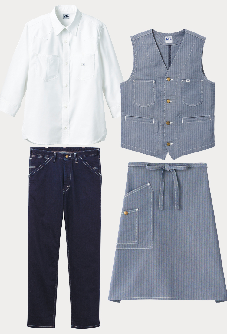 ジーンズで有名なアメリカンワークウェアブランド「Lee」。カジュアルなデザインとユニフォームに欠かせない機能が組み合わされたウェアシリーズです。