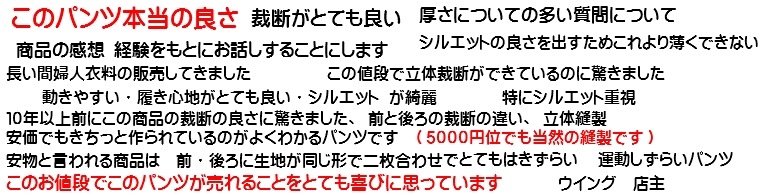 ストレッチパンツより 若干生地が厚手になります。 学生の体操ズボンくらいの生地の 厚さです。 ※入荷時期により、サイズに若干の 誤差が生じます。ご了承願います。 |