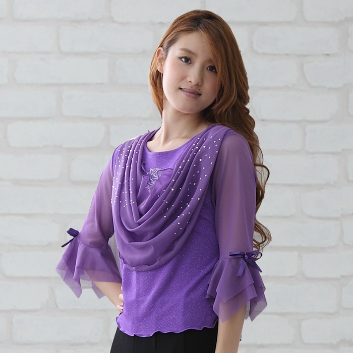 伸びるストレッチ素材。 豪華なドレープえりと袖は 伸縮性のあるシースルー地。 えりと胸元には、光るジルコン ダイヤストーンが 散りばめられています。 豪華で幅広い世代に人気の デザインは、イチオシおすすめ! 選べるサイズ豊富なカラーで お選びください。 |